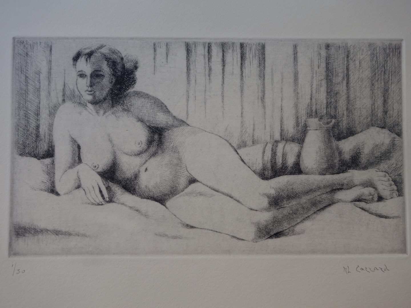Académie Artiste CARRARD-KOHLER Marie-Louise Numéro d'inventaire FAA-CML-3355 Titre Académie Année 1943 Dimensions sur chassis 34.5x43.5 cm Technique / Support Eau forte Catégories Nu Signature / Datation ML Carrard" bd Remarques - 4 épreuves justifiées 1/30 à 4/30 - Titre manuscrit sur le journal d'emballage de la plaque, daté 1943 Agrandir l'image Découvrez l'artiste CARRARD-KOHLER Marie-Louise Châtelard Orbe (CH) 5 septembre 1901 / 1 décembre 1981 Fonds géré par la FAA Consulter sa fiche