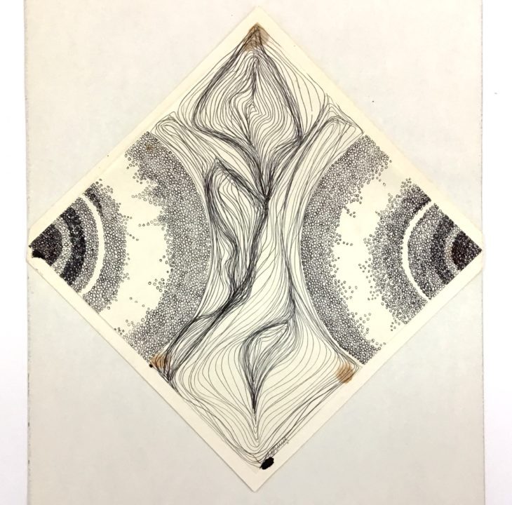 - L’oeuvre était dans une chemise avec plusieurs autres oeuvres. La chemise portait la mention suivante : « Elle, Lui, « Arbres-Planètes » 1977 Dessin au stylographe », voir no d’inventaire 3888.