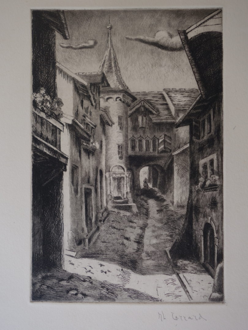 Auvernier Artiste CARRARD-KOHLER Marie-Louise Numéro d'inventaire FAA-CML-3311 Titre Auvernier Année 1947 Dimensions sur chassis 43x34.5 cm Technique / Support Eau forte, Aquatinte Catégories Paysage urbain Signature / Datation "ML Carrard" bd Remarques - 2 épreuves signées, mais non justifiées - date selon journal d'emballage de la plaque Agrandir l'image Découvrez l'artiste CARRARD-KOHLER Marie-Louise Châtelard Orbe (CH) 5 septembre 1901 / 1 décembre 1981 Fonds géré par la FAA Consulter sa fiche