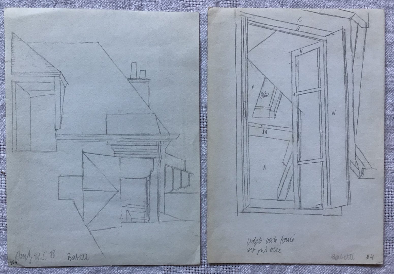 - 4 croquis datant de 1988 (aux dimensions variables), titrés « Babette » ; 1 croquis comporte la mention « Amb » bg (Amboise)