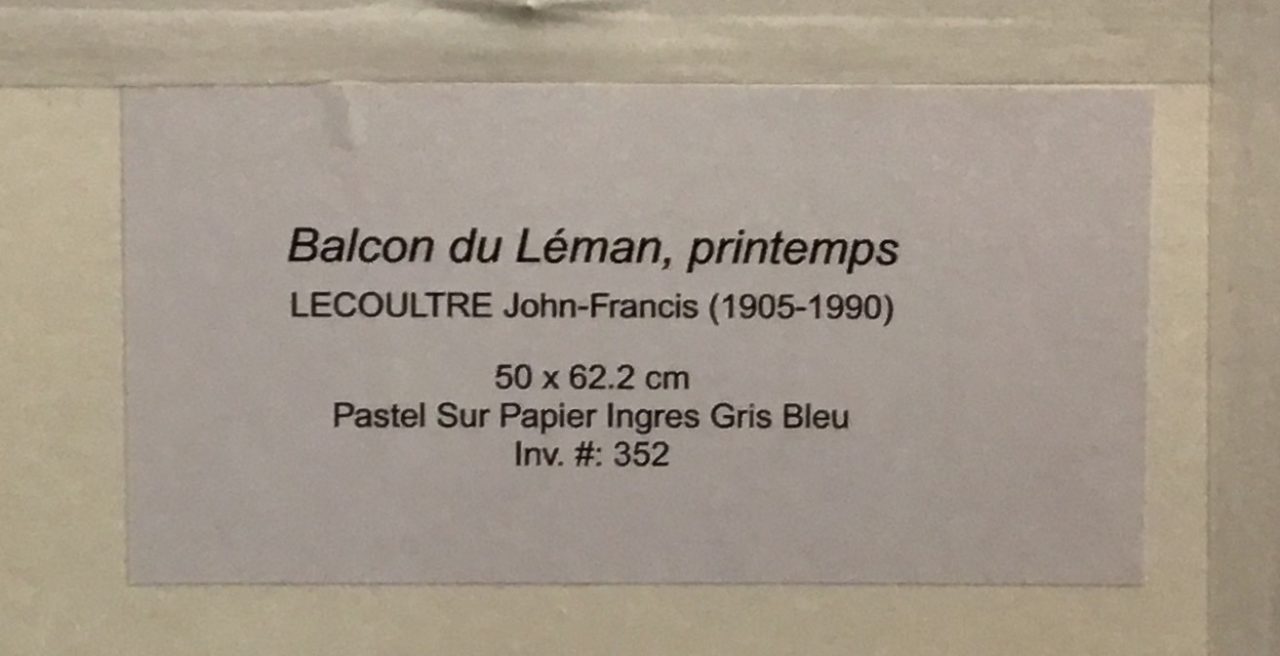 - « Inv. No 352 » au verso correspond au numéro d’inventaire attribué à l’oeuvre par les donateurs du fonds, cf liste des oeuvres du 4 mai 2021