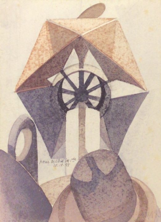 - 1 gouache dédicacée « pour Micha la 1ère / 10.10.85 » au recto et avec mention « *Tu sais ce que c’est / d’être jeune / Mais tu ne sais pas / ce que c’est d’être vieux* / O.W sept. 85 »