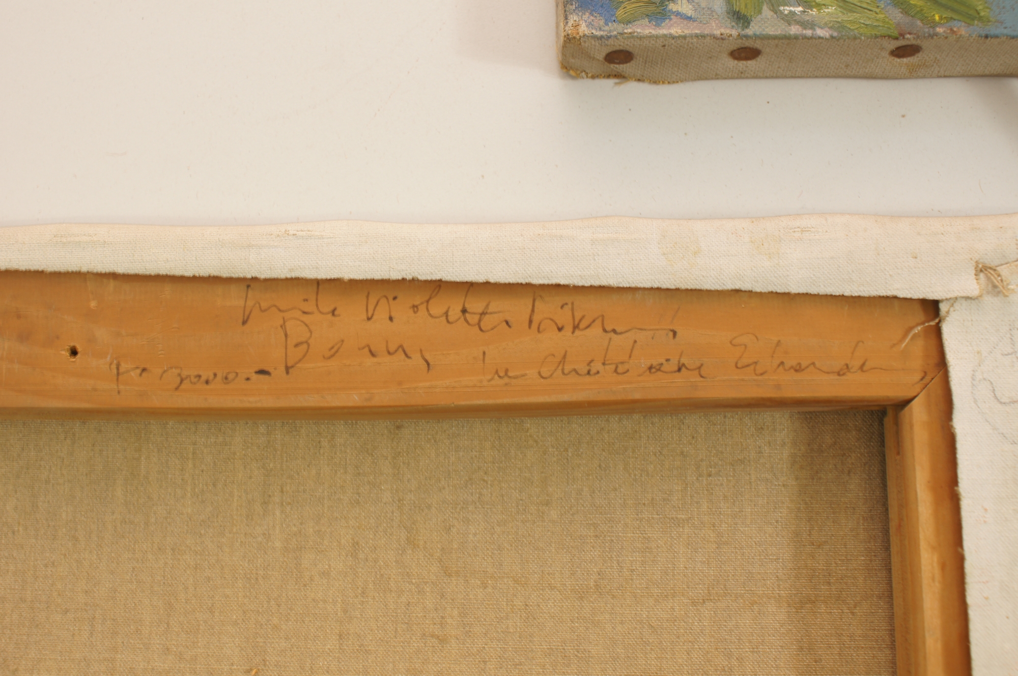 Bonny – Le Château Echandens Artiste DISERENS Violette Numéro d'inventaire FAA-DV-1560 Titre Bonny – Le Château Echandens Dimensions sur chassis 66x50 cm Technique / Support Huile, Toile Catégories Scène de genre Signature / Datation "Violette Diserens" sur le châssis au verso Remarques - prix historique Fr. 3'000.- Agrandir l'image Découvrez l'artiste DISERENS Violette Lausanne (CH) 2 juin 1888 / 27 avril 1965 Peinture, Gravure Fonds géré par la FAA Consulter sa fiche Images complémentaires DISERENS Violette – Bonny – Le Château Echandens – Huile, Toile, 66x50 cm – Scène de genre