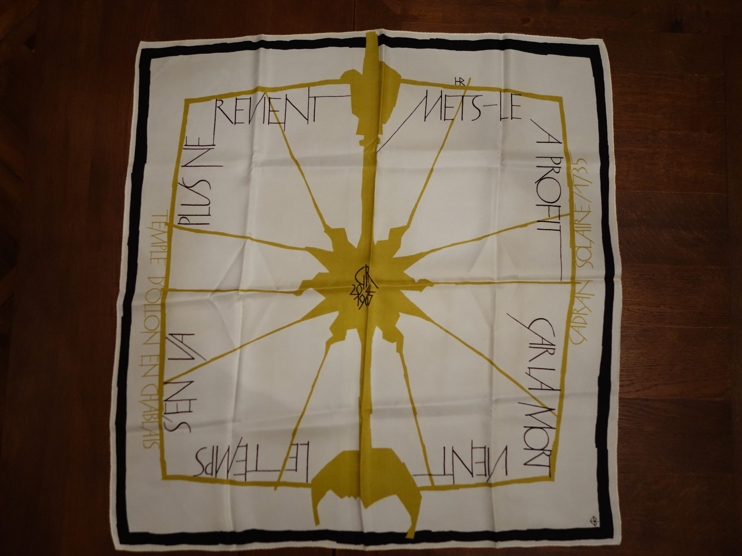- "GR / 20 4 / 1967" Inscription au centre du foulard