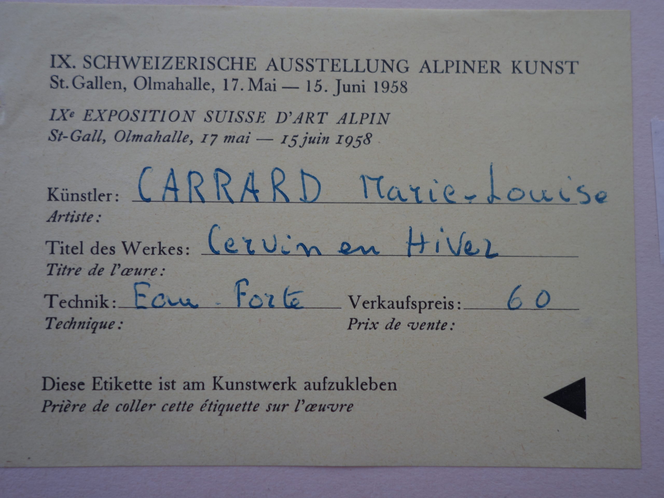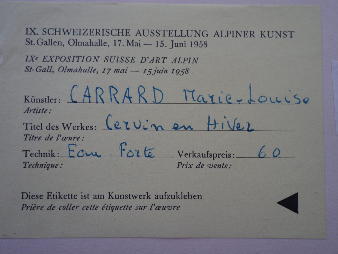 - titre "Cervin en hiver" sur étiquette collée au dos, cf photo