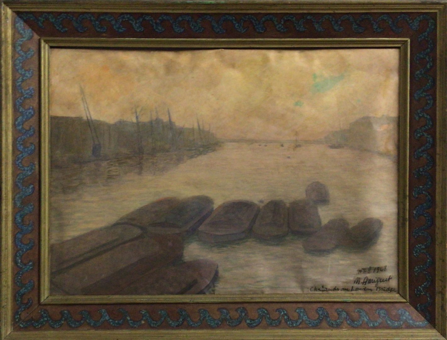 Chalands au Londonien Bridge Artiste AMIGUET Marcel Numéro d'inventaire FAA-AMM-6025 Titre Chalands au Londonien Bridge Année 1948 Technique / Support Huile, Papier Catégories Paysage urbain Signature / Datation N°8 1948 M.Amiguet Chalands au London Bridge, bd Remarques Plusieurs indications au dos de l’oeuvre Cadre peint avec frise décorative Agrandir l'image Découvrez l'artiste AMIGUET Marcel Ollon (CH) 1891 / 1958 Peinture, Gravure, Dessin, Aquarelle Fonds géré par la FAA Consulter sa fiche