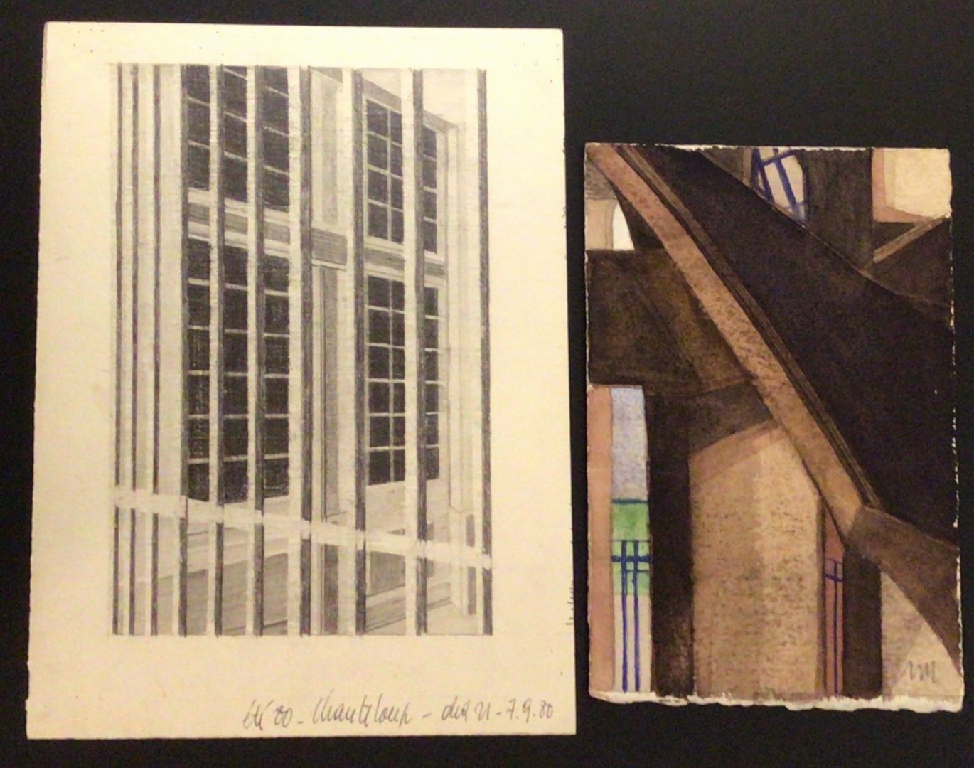 - 4 dessins (19,5x15cm et 22,5x17,5cm) datés « été 80 », titrés « Chanteloup » et 1 possède la mention « Touraine » au verso