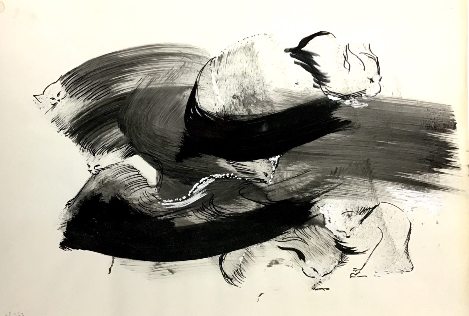 - l’oeuvre se trouvait avec 4 autres chatitudes dans un cartable avec la mention « 5 chatitudes encres + gouache ».