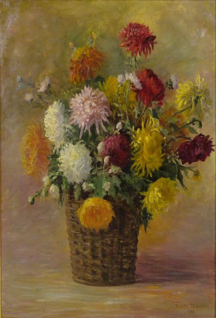 Chrysanthèmes Artiste DISERENS Violette Numéro d'inventaire FAA-DV-1535 Titre Chrysanthèmes Année 1913 Dimensions sur chassis 73x60 cm Technique / Support Huile, Toile Catégories Nature morte Signature / Datation « Violette Diserens / 1913 » bd Remarques - titre au verso - Enfoncement hd Agrandir l'image Découvrez l'artiste DISERENS Violette Lausanne (CH) 2 juin 1888 / 27 avril 1965 Peinture, Gravure Fonds géré par la FAA Consulter sa fiche