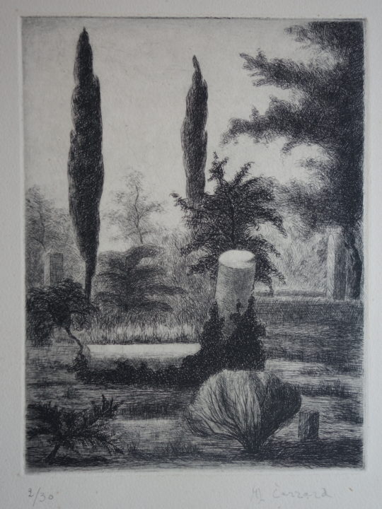 Cimetière Pully Artiste CARRARD-KOHLER Marie-Louise Numéro d'inventaire FAA-CML-3258 Titre Cimetière Pully Année 1941 Dimensions sur chassis 43x33.5 cm Technique / Support Eau forte Catégories Paysage Signature / Datation "ML Carrard" bd Remarques - 1 épreuve justifié 2/30 - titre manuscrit sur le journal d'emballage de la plaque, daté 1941 Agrandir l'image Découvrez l'artiste CARRARD-KOHLER Marie-Louise Châtelard Orbe (CH) 5 septembre 1901 / 1 décembre 1981 Fonds géré par la FAA Consulter sa fiche