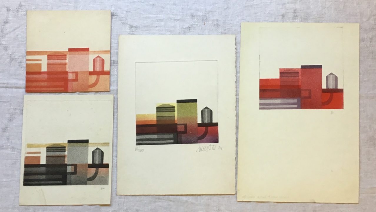 - 4 aquatintes d’un même sujet (d’une même plaque) traité avec différentes couleurs