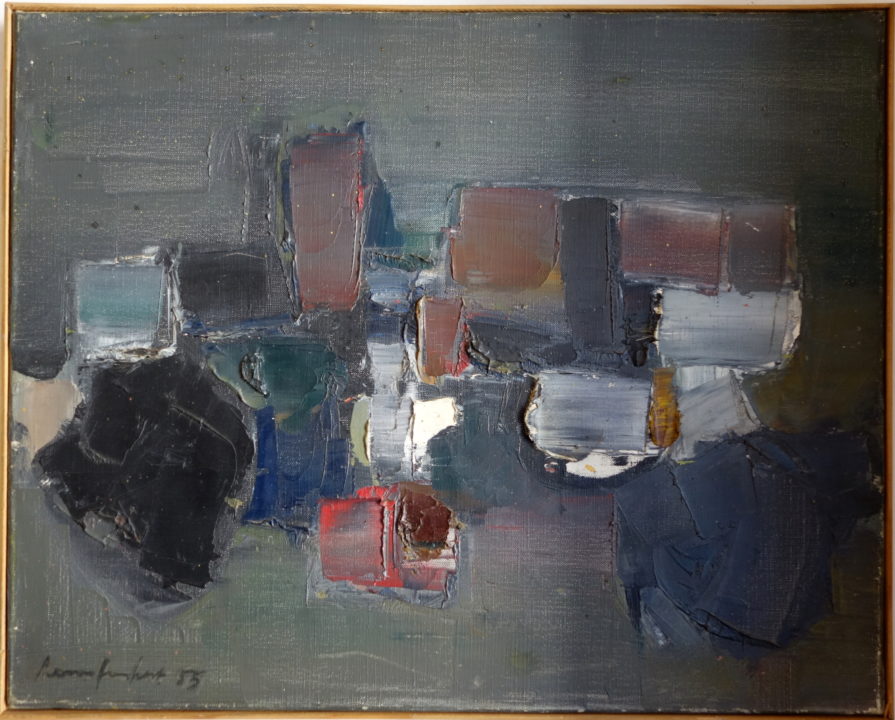 Composition noire Artiste PIERRE-HUMBERT Charles Numéro d'inventaire FAA-PHC-2834 Titre Composition noire Disponibilité Œuvre inaliénable Année 1955 Dimensions sur chassis 33x41 cm Technique / Support Huile, Toile Catégories Non figuratif Signature / Datation "PierreHumbert 55" bg Littérature Reproduit in: Redécouvertes-FAA, St-Maurice, 2021 Remarques - "Composition noire 55 / cat no 14" au dos Agrandir l'image Découvrez l'artiste PIERRE-HUMBERT Charles Thielle (NE) (CH) 10 septembre 1920 / 20 octobre 1992 Peinture, Lithographie, Mosaïque, Vitrail Fonds géré par la FAA Consulter sa fiche