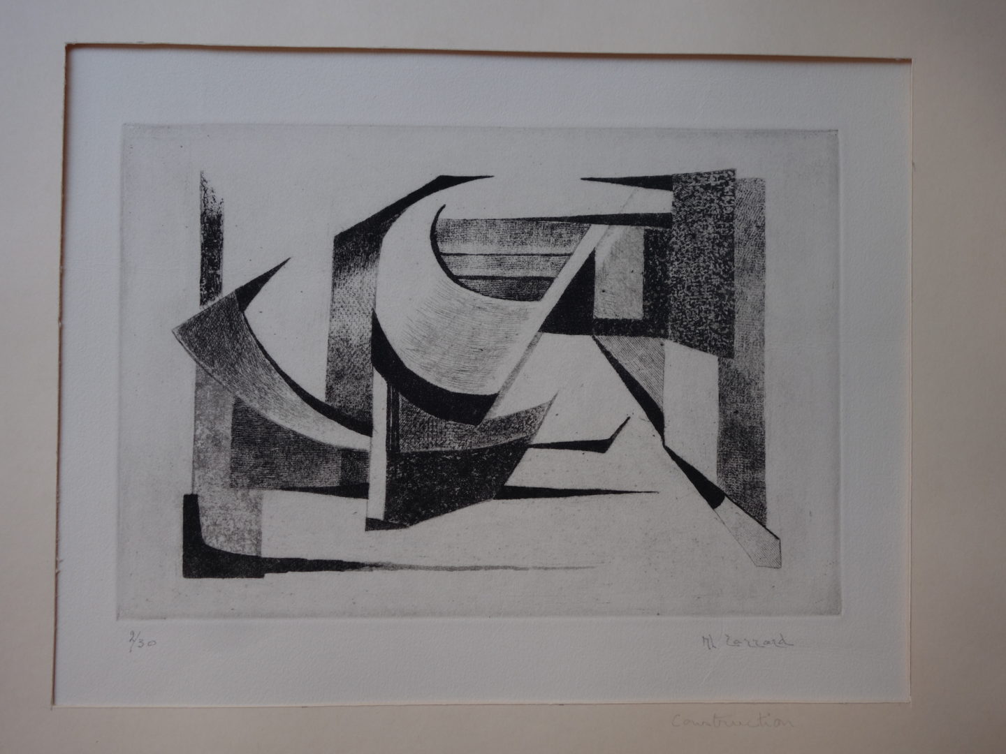 - 1 épreuve horizontale, justifiée 2/30, comportant le titre "Construction" sur le bas du passe-partout, donc du tirage de 1960