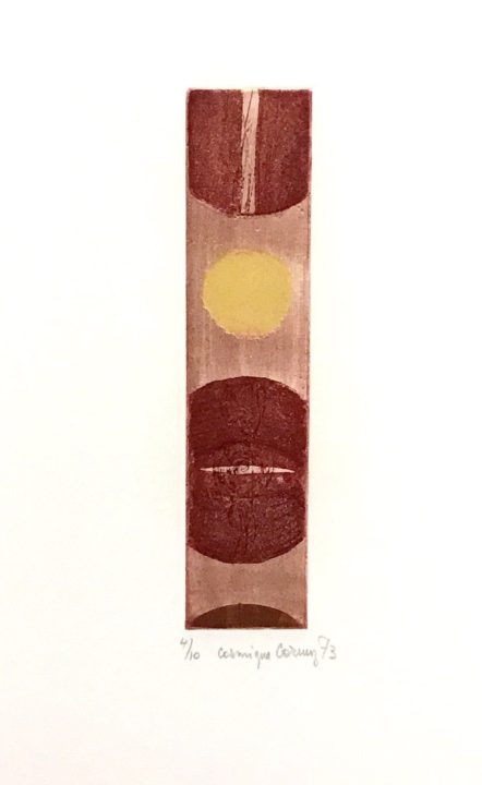 Cosmique Artiste CORNUZ-MOLLES Christiane Numéro d'inventaire FAA-CC-3669 Titre Cosmique Année 1973 Technique / Support Aquatinte, Eau forte, Papier Catégories Non figuratif Signature / Datation « Cornuz 73 » bd Remarques - 4 épreuves justifiées 4/10 à 7/10 signées, datées, titrées dont l’épreuve 7/10 a des dimensions différentes Agrandir l'image Découvrez l'artiste CORNUZ-MOLLES Christiane (CH) 19 janvier 1939 / 11 juillet 2005 Fonds géré par la FAA Consulter sa fiche