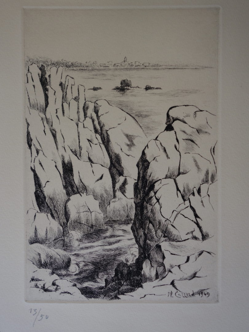 - titre manuscrit "Creïsic" sur le journal d'emballage de la plaque, daté de 1949. Il s’agit sans doute de l’Ile de Creïsic dans le Golfe du Morbihan, au sud de la Bretagne (aimable communication de Bernard Woeffray)