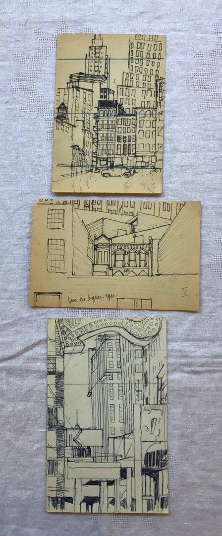 - 9 croquis Chicago (23x15cm) numérotés de 1 à 53, et daté d’avril 1967