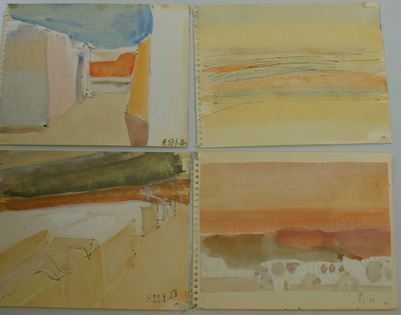 Croquis Tunisie Artiste MEYSTRE Charles Numéro d'inventaire FAA-MC-2007 Titre Croquis Tunisie Année 1958 Dimensions sur chassis 21x27 cm Technique / Support Papier, Encre, Crayon, Aquarelle Catégories Paysage Signature / Datation sans Remarques - 42 croquis datés de l’été 1958, dont 7 aquarelles (Petit classeur noir p. 193, section 5/orange) - Tous comportent un numéro, allant de 1 à 110. Agrandir l'image Découvrez l'artiste MEYSTRE Charles Thierrens (CH) 1 février 1925 / 18 mars 2013 Fonds géré par la FAA Consulter sa fiche