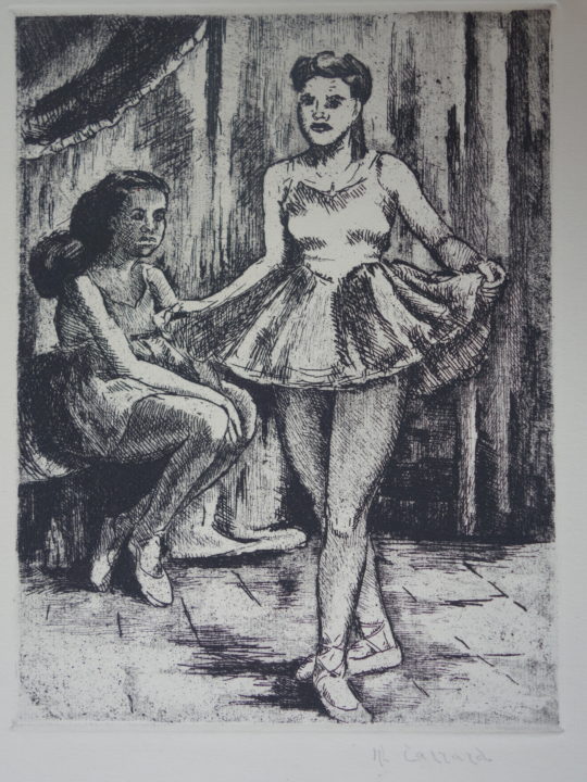 Danseuses Artiste CARRARD-KOHLER Marie-Louise Numéro d'inventaire FAA-CML-3367 Titre Danseuses Année 1974 Dimensions sur chassis 43.5x34.5 cm Technique / Support Eau forte Catégories Figure Signature / Datation "ML Carrard" bd Remarques - 2 épreuves non justifiées - Titre manuscrit sur le journal d'emballage de la plaque, daté 1974 Agrandir l'image Découvrez l'artiste CARRARD-KOHLER Marie-Louise Châtelard Orbe (CH) 5 septembre 1901 / 1 décembre 1981 Fonds géré par la FAA Consulter sa fiche
