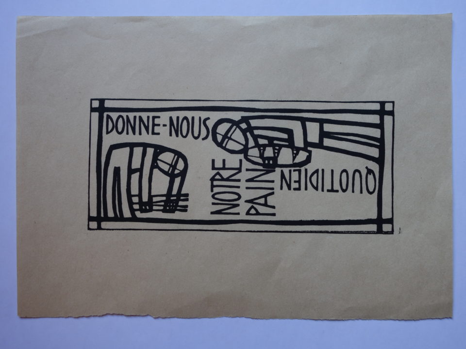 Projet pour une table basse à la mosaïque réalisée à l'occasion du mariage début 1959, d'où l'iconographie particulière: Madame glane les épis, Monsieur présente la miche de pain.
