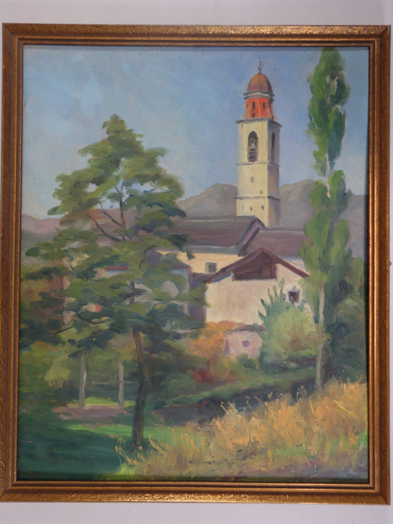 Environ Locarno Artiste CARRARD-KOHLER Marie-Louise Numéro d'inventaire FAA-CML-3155 Titre Environ Locarno Année 1942 Dimensions sur chassis 43.5x35 cm Technique / Support Huile, Carton Catégories Architecture Signature / Datation "ML Carrard" bd Remarques Titré et daté au dos Agrandir l'image Découvrez l'artiste CARRARD-KOHLER Marie-Louise Châtelard Orbe (CH) 5 septembre 1901 / 1 décembre 1981 Fonds géré par la FAA Consulter sa fiche