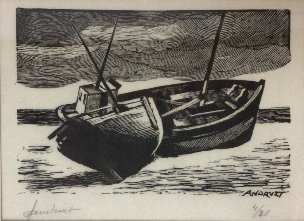 Epaves Artiste ANDRUET Francis Numéro d'inventaire FAA-AF-5580 Titre Epaves Technique / Support Papier, Gravure, Bois Catégories Objet Signature / Datation « f andruet » bg et « ANDRUET » bd (dans l’image) Remarques - Titre au verso - Justifié « 4/28 » Agrandir l'image Découvrez l'artiste ANDRUET Francis Genève (CH) 28 mai 1923 / 26 décembre 2018 Peinture à l'huile, Aquarelle, Dessin, Xylographie Fonds géré par la FAA Consulter sa fiche