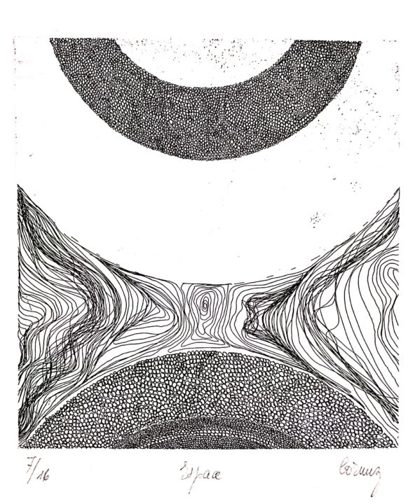 Espace Artiste CORNUZ-MOLLES Christiane Numéro d'inventaire FAA-CC-3720 Titre Espace Année 1973 Technique / Support Eau forte, Papier Catégories Non figuratif Signature / Datation « Cornuz « bd Remarques - 9 épreuves justifiées de 7/16 à 14/16, titrées, signées - la justification 9/16 est présente 2 fois sans doute par erreur. Agrandir l'image Découvrez l'artiste CORNUZ-MOLLES Christiane (CH) 19 janvier 1939 / 11 juillet 2005 Fonds géré par la FAA Consulter sa fiche
