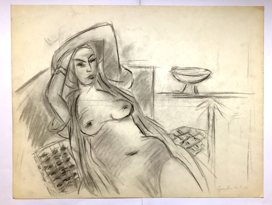 Femme au coussin Artiste PIERRE-HUMBERT Charles Numéro d'inventaire FAA-PHC-4070 Titre Femme au coussin Disponibilité Œuvre inaliénable Année 1985 Technique / Support Fusain, Papier Catégories Figure Signature / Datation « PierreHumbert 85 » Remarques - Titre au dos - Au verso, dessin partiellement effacé d’un nu de dos Agrandir l'image Découvrez l'artiste PIERRE-HUMBERT Charles Thielle (NE) (CH) 10 septembre 1920 / 20 octobre 1992 Peinture, Lithographie, Mosaïque, Vitrail Fonds géré par la FAA Consulter sa fiche Images complémentaires PIERRE-HUMBERT Charles – Femme au coussin 1985 – Fusain, Papier – Figure