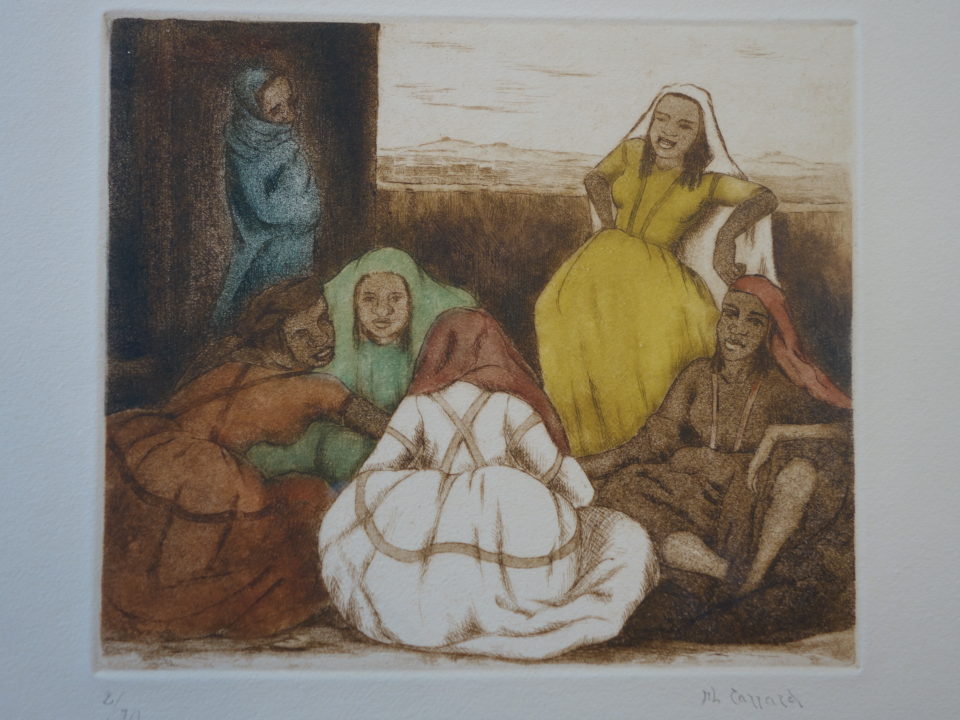 Femmes arabes Artiste CARRARD-KOHLER Marie-Louise Numéro d'inventaire FAA-CML-3186 Titre Femmes arabes Année 1951 Dimensions sur chassis 34x43.5 cm Technique / Support Eau forte, Polychrome, Aquatinte Catégories Scène de genre Signature / Datation "ML Carrard" bd Remarques - 3 épreuves justifiées 1/10 à 3/10 - titre indiqué sur le journal d'emballage qui date de 1951 Agrandir l'image Découvrez l'artiste CARRARD-KOHLER Marie-Louise Châtelard Orbe (CH) 5 septembre 1901 / 1 décembre 1981 Fonds géré par la FAA Consulter sa fiche