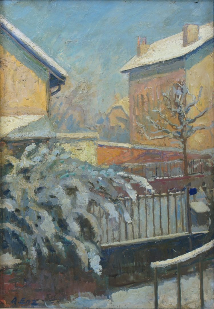 Fin d’hiver Artiste ENZ Albert Numéro d'inventaire FAA-EA-1016 Titre Fin d’hiver Disponibilité Œuvre inaliénable Dimensions sur chassis 55x38 cm Technique / Support Huile, Ardoise Catégories Paysage Signature / Datation "A. Enz" bg Remarques '- prix historique Fr. 380 Agrandir l'image Découvrez l'artiste ENZ Albert Winterthur (CH, F) 25 septembre 1909 / 11 mai 1982 Fonds géré par la FAA Consulter sa fiche