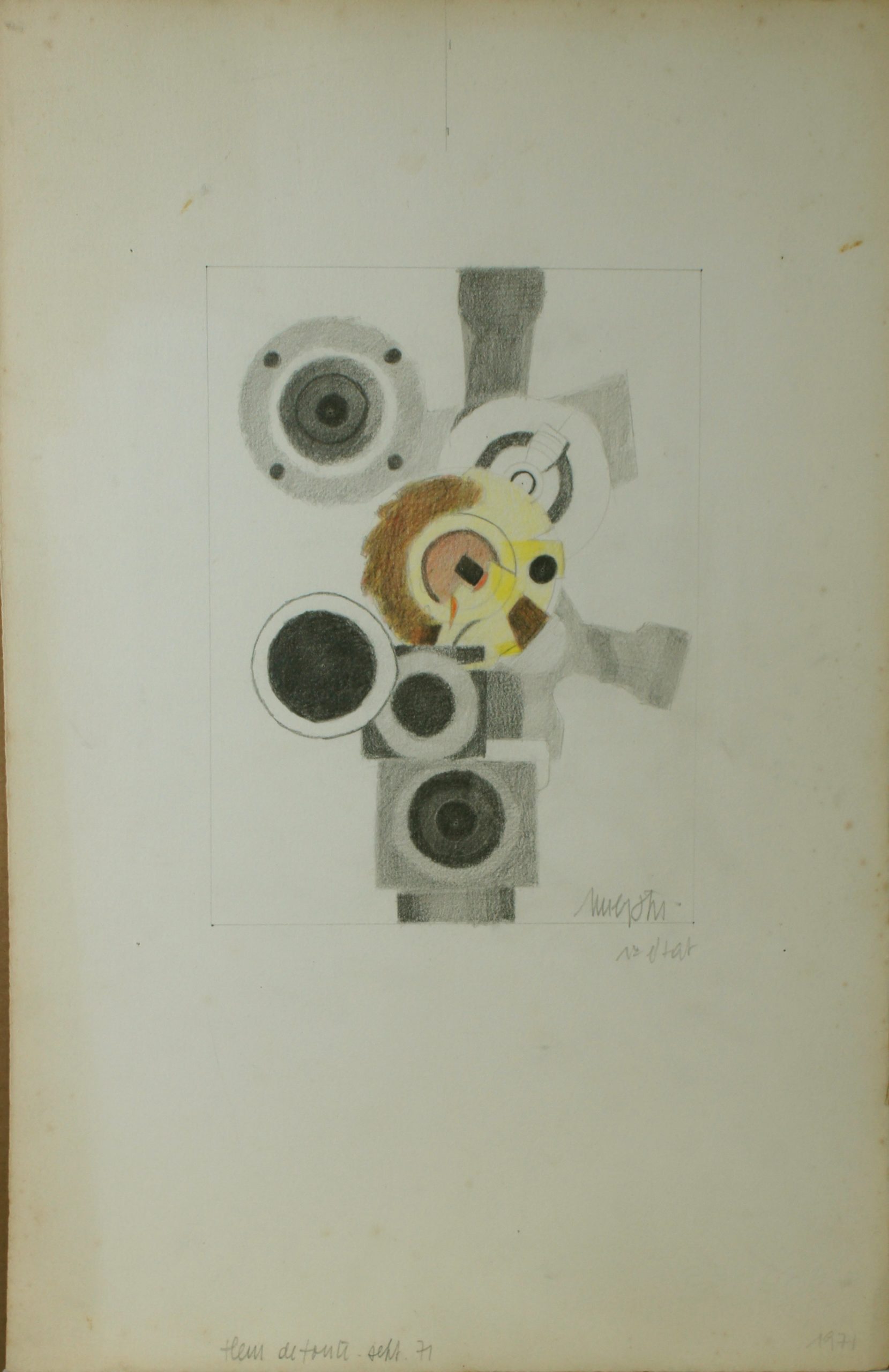 Fleur de fonte Artiste MEYSTRE Charles Numéro d'inventaire FAA-MC-2005 Titre Fleur de fonte Année 1971 Dimensions sur chassis 50.5x33 cm Technique / Support Crayon, Couleur Catégories Nature morte Signature / Datation "Meystre" bd Remarques - possédons également deux aquatinte : une épreuve d'artiste II/VI, signée "Meystre" bd, 2e état et un bon à tirer du 13.10.71 Agrandir l'image Découvrez l'artiste MEYSTRE Charles Thierrens (CH) 1 février 1925 / 18 mars 2013 Fonds géré par la FAA Consulter sa fiche Images complémentaires MEYSTRE Charles – Fleur de fonte 1971 – Crayon, Couleur, 50.5x33 cm – Nature morte