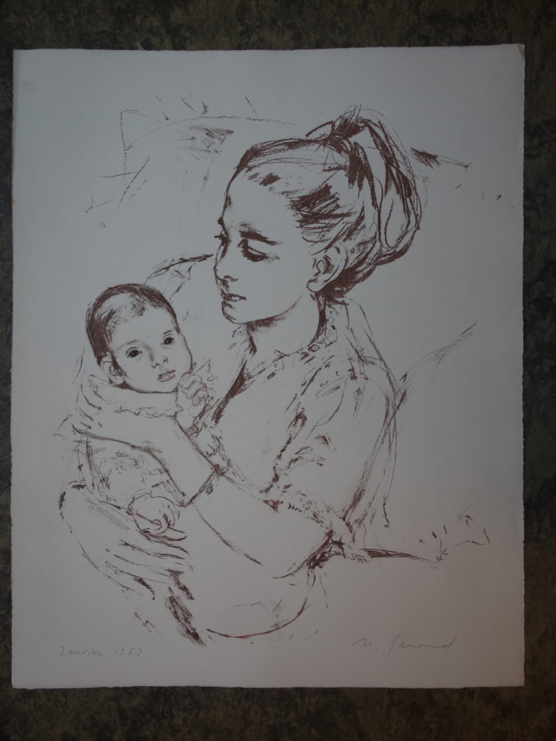 Françoise « Fanchette » Roulin-Genoud avec sa fille Isabelle Artiste GENOUD Nanette Numéro d'inventaire FAA-GN-2753 Titre Françoise « Fanchette » Roulin-Genoud avec sa fille Isabelle Année 1967 Dimensions sur chassis 56x45 cm Technique / Support Lithographie Catégories Portrait Signature / Datation "n. Genoud" bd Remarques 1 épreuve rouge foncé signée et datée "Janvier 1967" 3 épreuves signées 20 épreuves non signées, dont 3 noir sur blanc Agrandir l'image Découvrez l'artiste GENOUD Nanette (CH) 9 avril 1907 / 30 novembre 1987 Fonds géré par la FAA Consulter sa fiche Images complémentaires GENOUD Nanette – Françoise « Fanchette » Roulin-Genoud avec sa fille Isabelle 1967 – Lithographie, 56x45 cm – Portrait