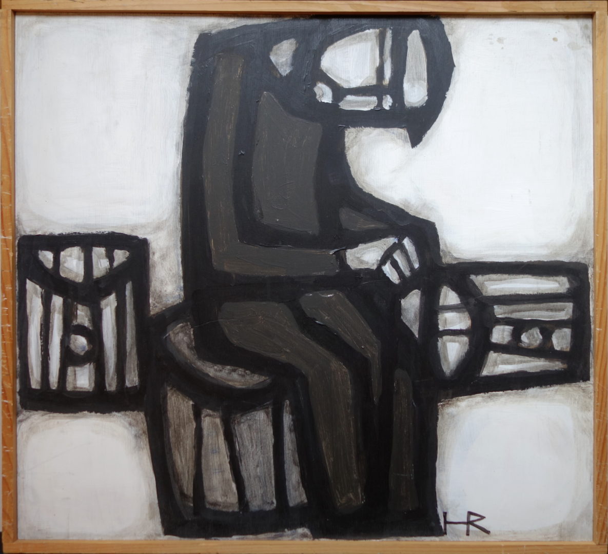 Homme assis Artiste HERITIER Robert Numéro d'inventaire FAA-HER-2784 Titre Homme assis Année 1967 Dimensions sur chassis 50x50 cm Technique / Support Huile, A définir Catégories Scène de genre Signature / Datation "HR" bd "R: HERITIER 67" au dos Remarques Titre a dos Agrandir l'image Découvrez l'artiste HERITIER Robert 2 août 1926 / 8 juin 1971 Peinture, Gravure, Mosaïque, Céramique, Graphisme Fonds géré par la FAA Consulter sa fiche