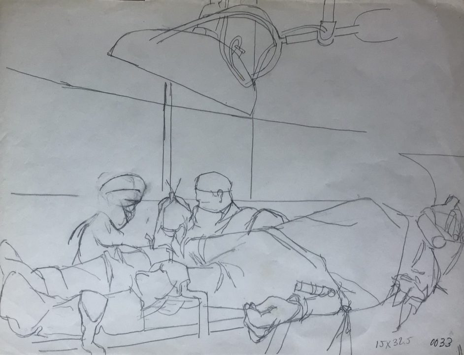 Chirurgiens Artiste MEYSTRE Charles Numéro d'inventaire FAA-MC-1891 Titre inconnu Dénomination Chirurgiens Année 1990 Technique / Support Papier, Craie grasse, Crayon Catégories Scène de genre Remarques - 5 dessins (25,5x34cm) numéroté 03, 025, 025, 031, 033. - 10 dessins formats divers sans numérotation. - 3 petites esquisses dont 2 numérotées 037et 049 (15x20,50cm) - 2 dessins de craie grasse (25x16,5cm), datés 1990 bd - Datation : Grand classeur noir (p. 123-liste des thèmes) Agrandir l'image Découvrez l'artiste MEYSTRE Charles Thierrens (CH) 1 février 1925 / 18 mars 2013 Fonds géré par la FAA Consulter sa fiche