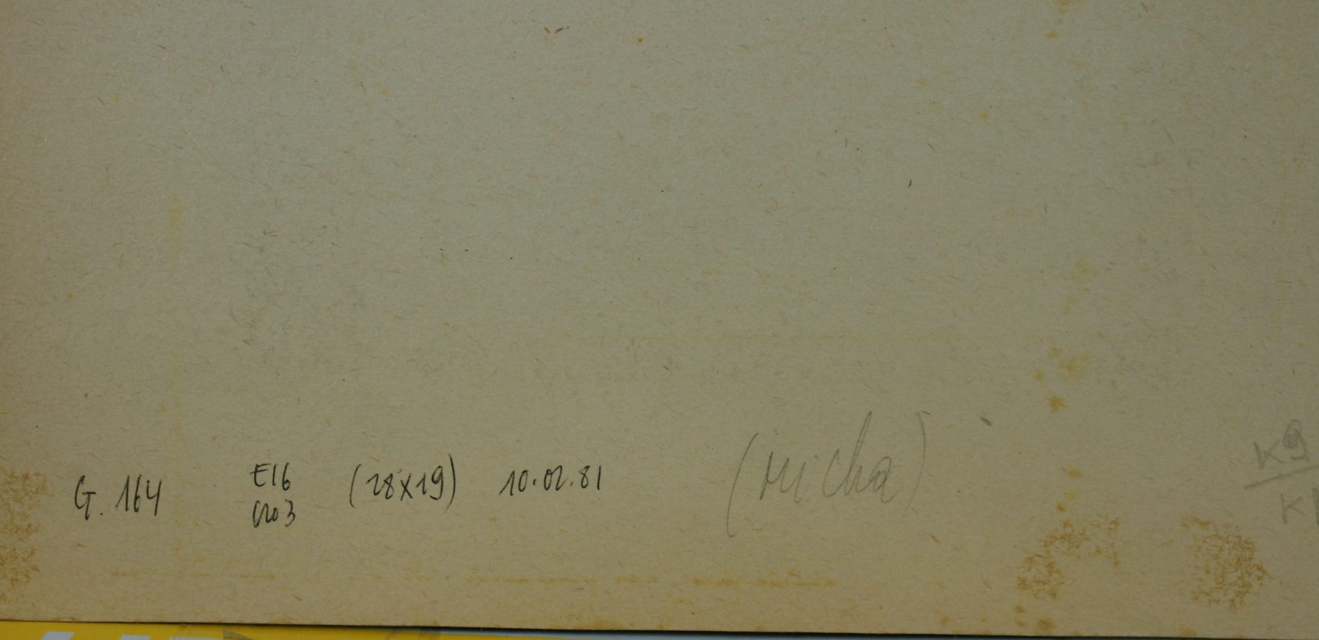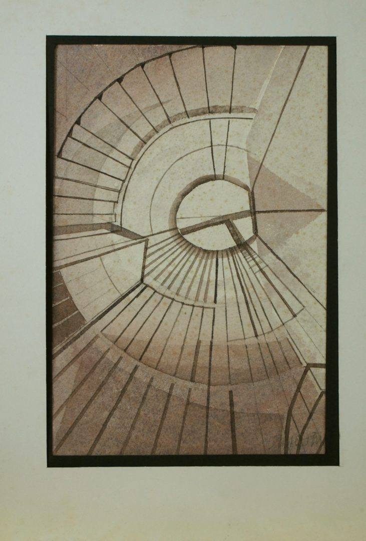 Escalier en colimaçon Artiste MEYSTRE Charles Numéro d'inventaire FAA-MC-1905 Titre inconnu Dénomination Escalier en colimaçon Année 1981 Dimensions sur chassis 28x19 cm Technique / Support Crayon, Papier, Gouache Catégories Architecture Signature / Datation "Meystre" (BD) Remarques - Date et no° préexistant au verso - Signatures bd de l’image et bd du support « M. 81 » - Inscription au dos « (Micha) » Agrandir l'image Découvrez l'artiste MEYSTRE Charles Thierrens (CH) 1 février 1925 / 18 mars 2013 Fonds géré par la FAA Consulter sa fiche Images complémentaires MEYSTRE Charles – Escalier en colimaçon 1981 – Crayon, Papier, Gouache, 28x19 cm – Architecture