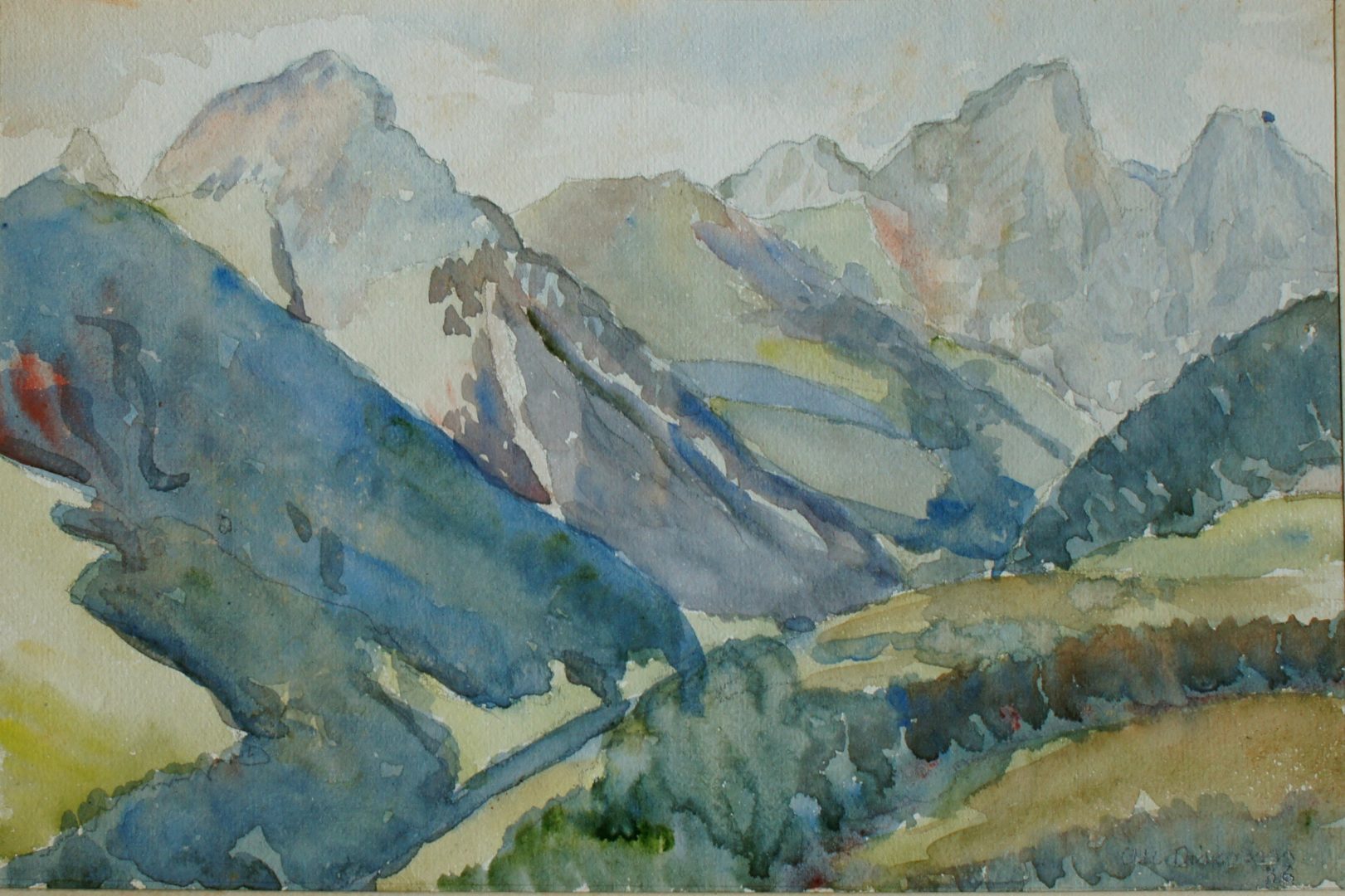 Paysage de montagne Artiste DISERENS Albert Numéro d'inventaire FAA-DA-1945 Titre inconnu Dénomination Paysage de montagne Année 1936 Dimensions sur chassis 13.7x20.7 cm Technique / Support Aquarelle Catégories Paysage de montagne Signature / Datation "Alb. Diserens" / "36" Agrandir l'image Découvrez l'artiste DISERENS Albert Lausanne (CH) 24 décembre 1891 / 9 mars 1967 Fonds géré par la FAA Consulter sa fiche