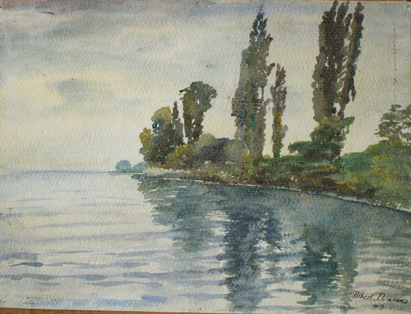 Bord de lac avec grands arbres Artiste DISERENS Albert Numéro d'inventaire FAA-DA-1967 Titre inconnu Dénomination Bord de lac avec grands arbres Année 1913 Dimensions sur chassis 27x36 cm Technique / Support Aquarelle Catégories Paysage Signature / Datation "Albert Diserens" / "1913" bd Agrandir l'image Découvrez l'artiste DISERENS Albert Lausanne (CH) 24 décembre 1891 / 9 mars 1967 Fonds géré par la FAA Consulter sa fiche