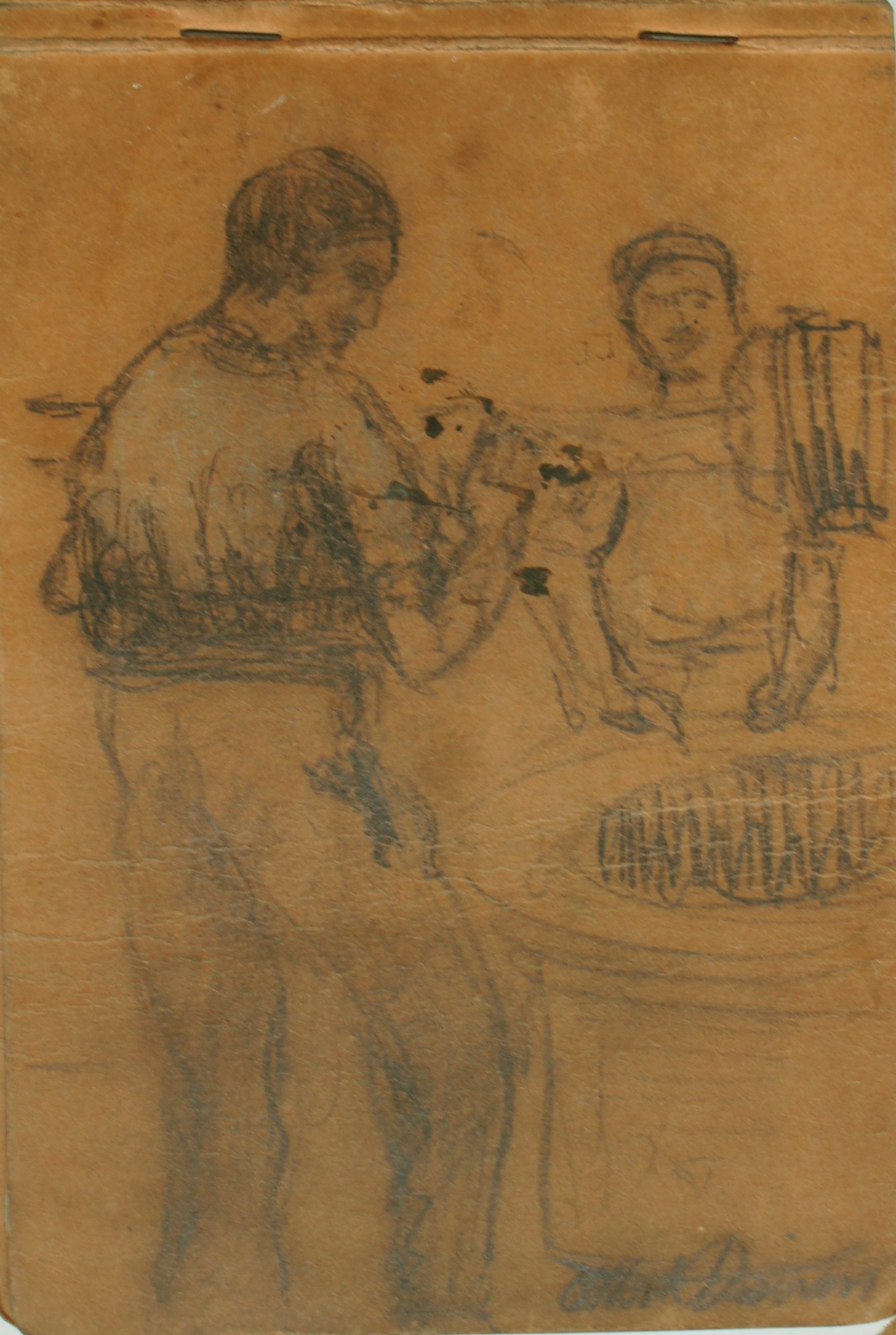 Carnet "Paris" Artiste DISERENS Albert Numéro d'inventaire FAA-DA-1993 Titre inconnu Dénomination Carnet "Paris" Dimensions sur chassis 14x20.5 cm Technique / Support Catégories Carnet Signature / Datation "Albert Diserens" au dos bd Remarques - dessin (mine de plomb) de deux hommes au dos du carnet, signé "Albert Diserens" bd Agrandir l'image Découvrez l'artiste DISERENS Albert Lausanne (CH) 24 décembre 1891 / 9 mars 1967 Fonds géré par la FAA Consulter sa fiche Images complémentaires DISERENS Albert – Carnet "Paris" , 14x20.5 cm – Carnet DISERENS Albert – Carnet "Paris" , 14x20.5 cm – Carnet DISERENS Albert – Carnet "Paris" , 14x20.5 cm – Carnet