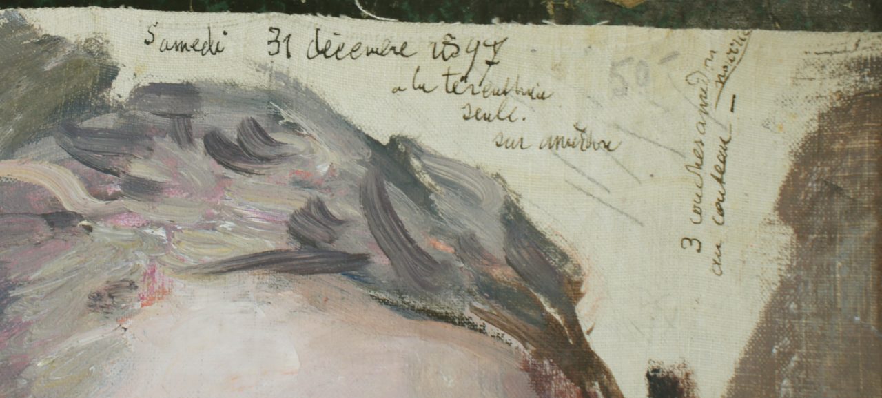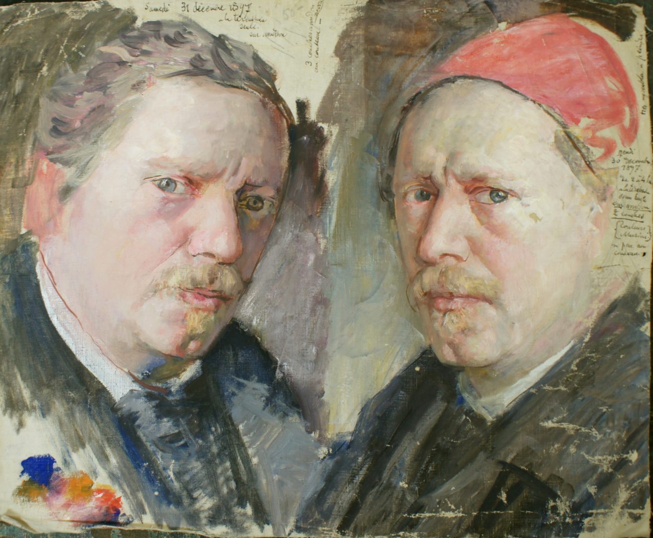 Double autoportrait Artiste VUILLERMET Charles (François) Numéro d'inventaire FAA-VC-2131 Titre inconnu Dénomination Double autoportrait Année 1897 Dimensions sur chassis 37.2x45 cm Technique / Support Huile, Toile Catégories Portrait Signature / Datation sans Littérature Reproduit in: Redécouvertes-FAA, St-Maurice, 2021 Remarques - Toile sans châssis Agrandir l'image Découvrez l'artiste VUILLERMET Charles (François) (CH) 13 août 1849 / 5 décembre 1918 Fonds géré par la FAA Consulter sa fiche Images complémentaires VUILLERMET Charles (François) – Double autoportrait 1897 – Huile, Toile, 37.2x45 cm – Portrait VUILLERMET Charles (François) – Double autoportrait 1897 – Huile, Toile, 37.2x45 cm – Portrait