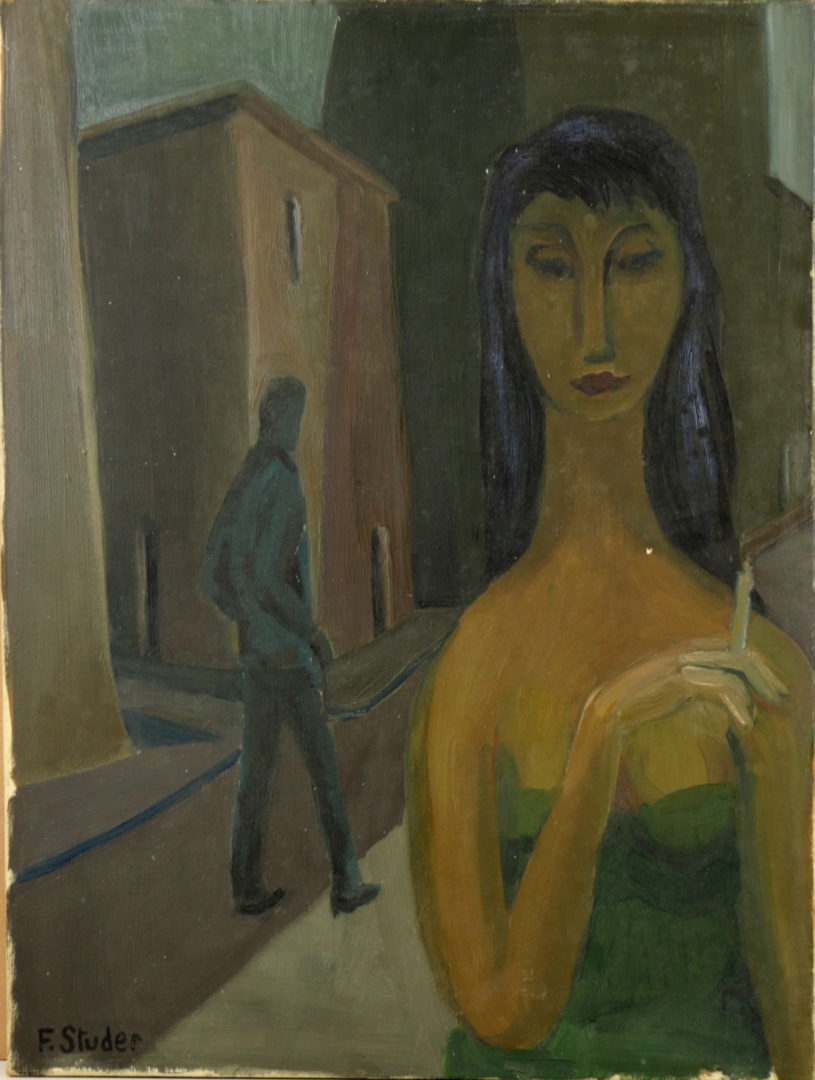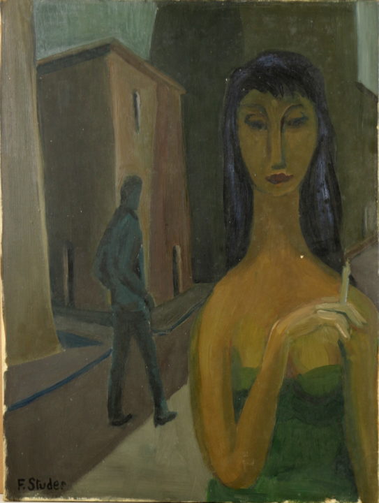 Femme à la cigarette Artiste URS (Frédéric Studer) Numéro d'inventaire FAA-URS-2363 Titre inconnu Dénomination Femme à la cigarette Dimensions sur chassis 61x50 cm Technique / Support Huile, Toile Catégories Scène de genre Signature / Datation "F. Studer" bg Remarques - dénomination attribuée par le donateur Agrandir l'image Découvrez l'artiste URS (Frédéric Studer) (CH) 26 mai 1926 / 22 octobre 2005 Fonds géré par la FAA Consulter sa fiche