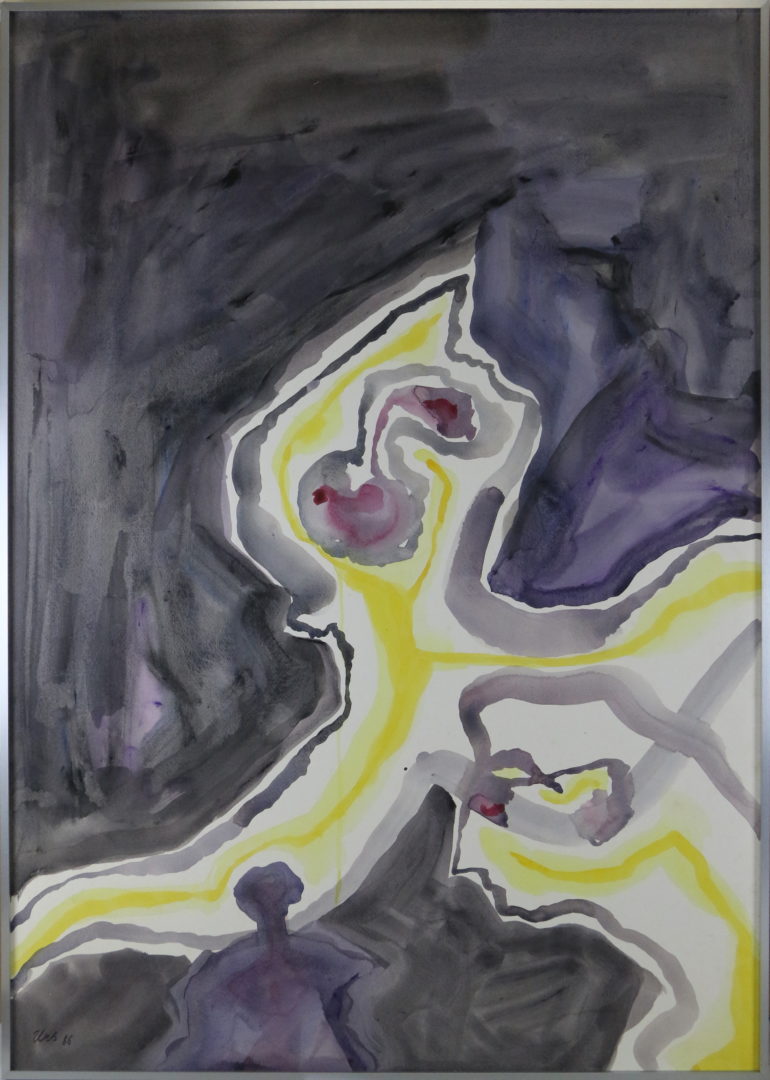 Tête en l'air Artiste URS (Frédéric Studer) Numéro d'inventaire FAA-URS-2407 Titre inconnu Dénomination Tête en l'air Année 1986 Dimensions sur chassis 99x69 cm Technique / Support Gouache Catégories Figure Signature / Datation "Urs 86" bg Remarques - dénomination attribuée par le donateur Agrandir l'image Découvrez l'artiste URS (Frédéric Studer) (CH) 26 mai 1926 / 22 octobre 2005 Fonds géré par la FAA Consulter sa fiche
