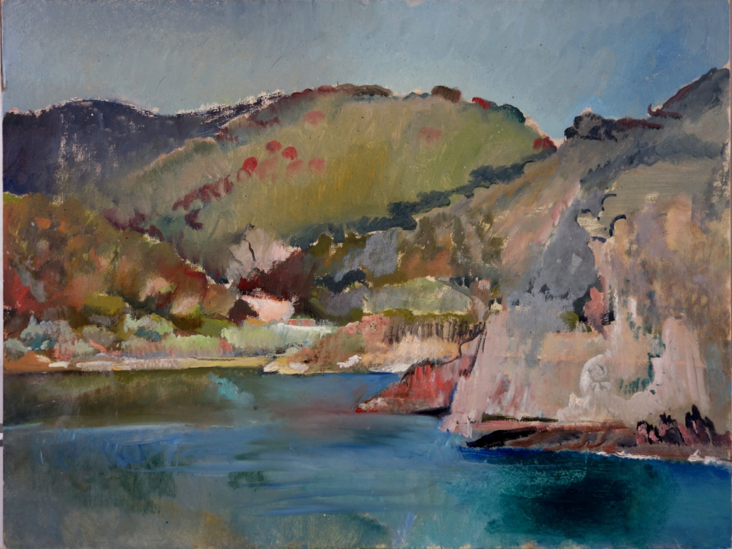 Collines au bord du l'eau Artiste GENOUD Nanette Numéro d'inventaire FAA-GN-2486 Titre inconnu Dénomination Collines au bord du l'eau Dimensions sur chassis 35x50.5 cm Technique / Support Huile, Toile, Marouflé/ée Catégories Paysage Remarques Support : carton de peintre de la marque Birchmore Board (voir photo), acheté a la droguerie du Lion d'Or à Lausanne (tampon au dos) Agrandir l'image Découvrez l'artiste GENOUD Nanette (CH) 9 avril 1907 / 30 novembre 1987 Fonds géré par la FAA Consulter sa fiche Images complémentaires GENOUD Nanette – Collines au bord du l'eau – Huile, Toile, Marouflé/ée, 35x50.5 cm – Paysage