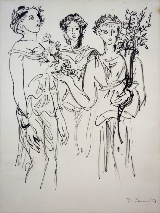Allégorie de l'abondance Artiste GENOUD Nanette Numéro d'inventaire FAA-GN-2500 Titre inconnu Dénomination Allégorie de l'abondance Année 1957 Dimensions sur chassis 35x25.5 cm Technique / Support Encre de chine Catégories Groupe de personnes Signature / Datation "n Genoud 57" bd Remarques Dans le 7 de la date 57, il y a inscrit comme un petit 2 Agrandir l'image Découvrez l'artiste GENOUD Nanette (CH) 9 avril 1907 / 30 novembre 1987 Fonds géré par la FAA Consulter sa fiche