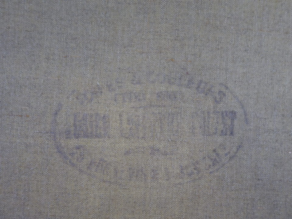 Tampon ovale au dos : toile et couleurs ... (reste illisible)
