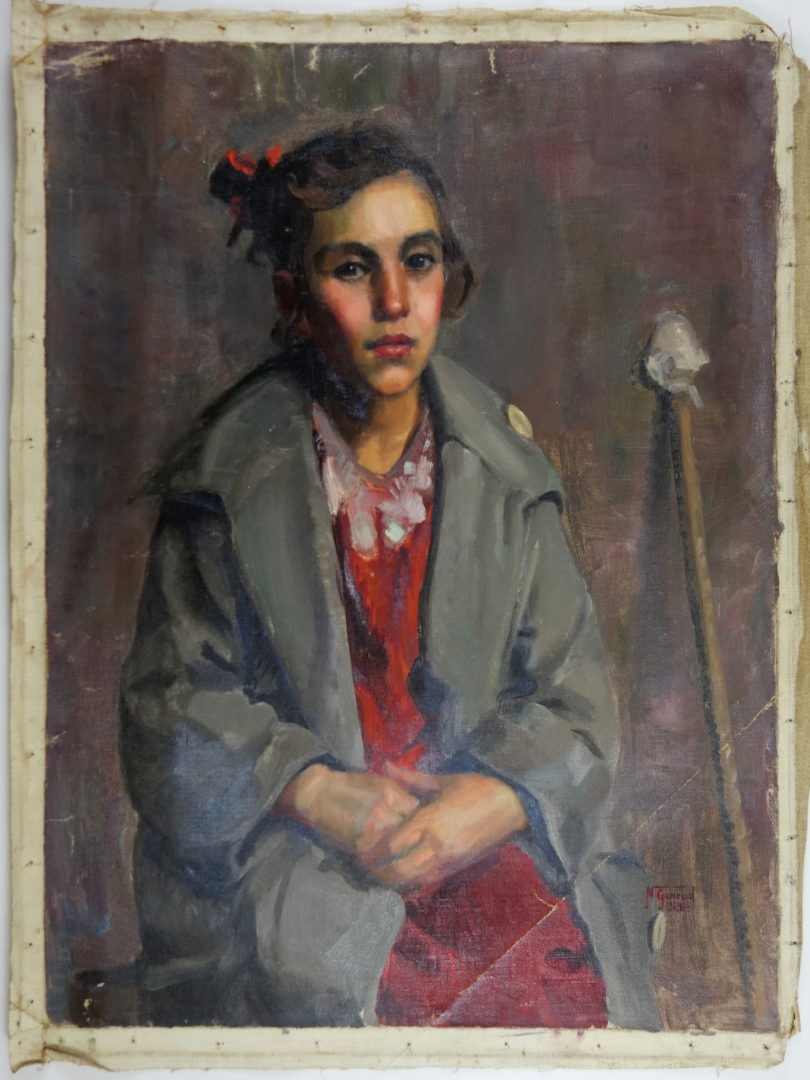 Portrait de jeune femme assise avec bâton de peintre