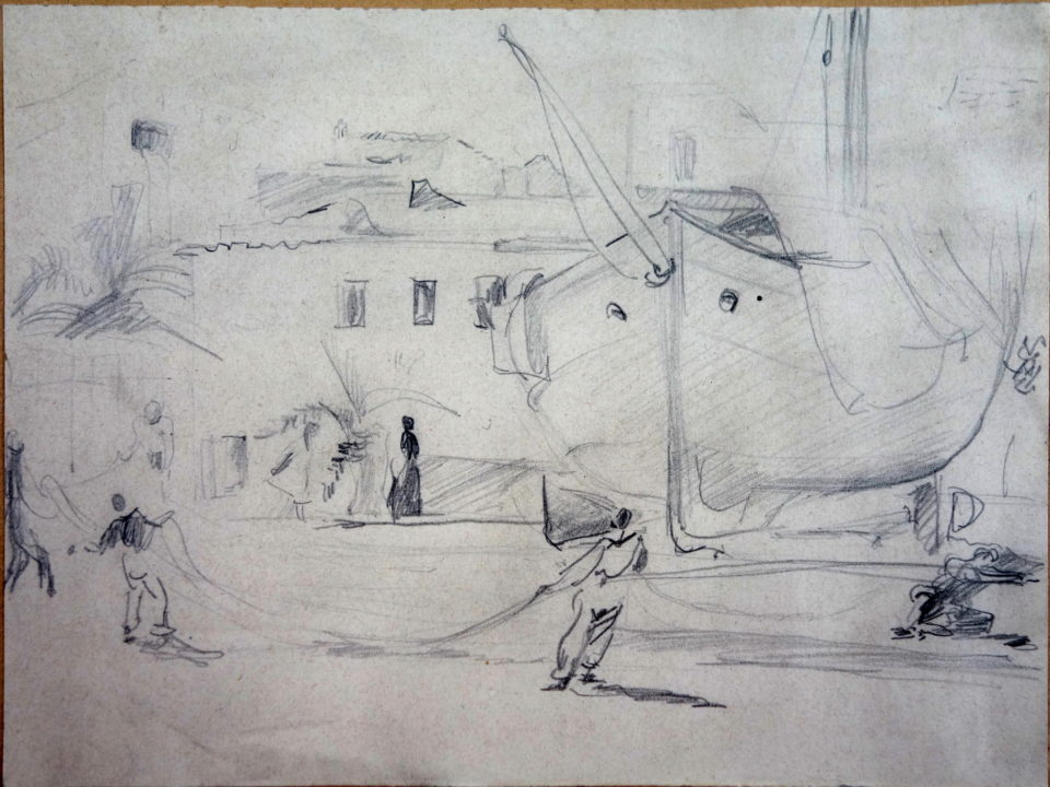 - Pêcheurs avec filets au port