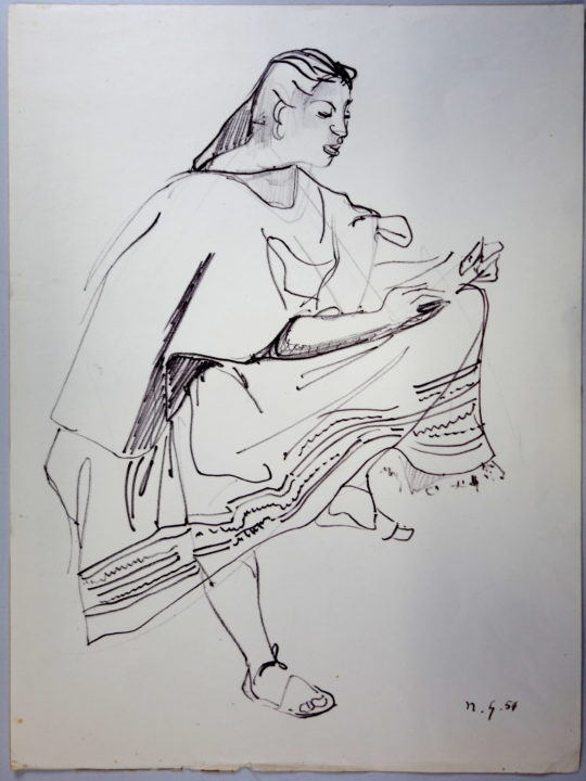 Jeune femme costumée à l'ouvrage Artiste GENOUD Nanette Numéro d'inventaire FAA-GN-2606 Titre inconnu Dénomination Jeune femme costumée à l'ouvrage Année 1951 Dimensions sur chassis 40.5x29.5 cm Technique / Support Feutre Catégories Scène de genre Signature / Datation "n.G. 51" BD Remarques Il est difficile de définir l'activité de la personne. Agrandir l'image Découvrez l'artiste GENOUD Nanette (CH) 9 avril 1907 / 30 novembre 1987 Fonds géré par la FAA Consulter sa fiche