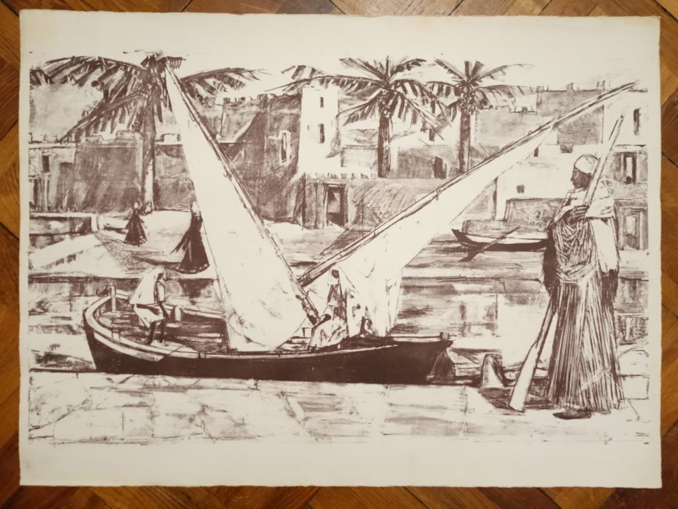 Paysage urbain avec grnde barque sur le Nil (?) Artiste GENOUD Nanette Numéro d'inventaire FAA-GN-2662 Titre inconnu Dénomination Paysage urbain avec grnde barque sur le Nil (?) Période Années 1960 Dimensions sur chassis 56x76 cm Technique / Support Lithographie Catégories Paysage urbain Remarques Réalisé probablement à la suite d'un voyage en Egypte en 1961. 2 épreuves, une en noir, une en brun. Agrandir l'image Découvrez l'artiste GENOUD Nanette (CH) 9 avril 1907 / 30 novembre 1987 Fonds géré par la FAA Consulter sa fiche