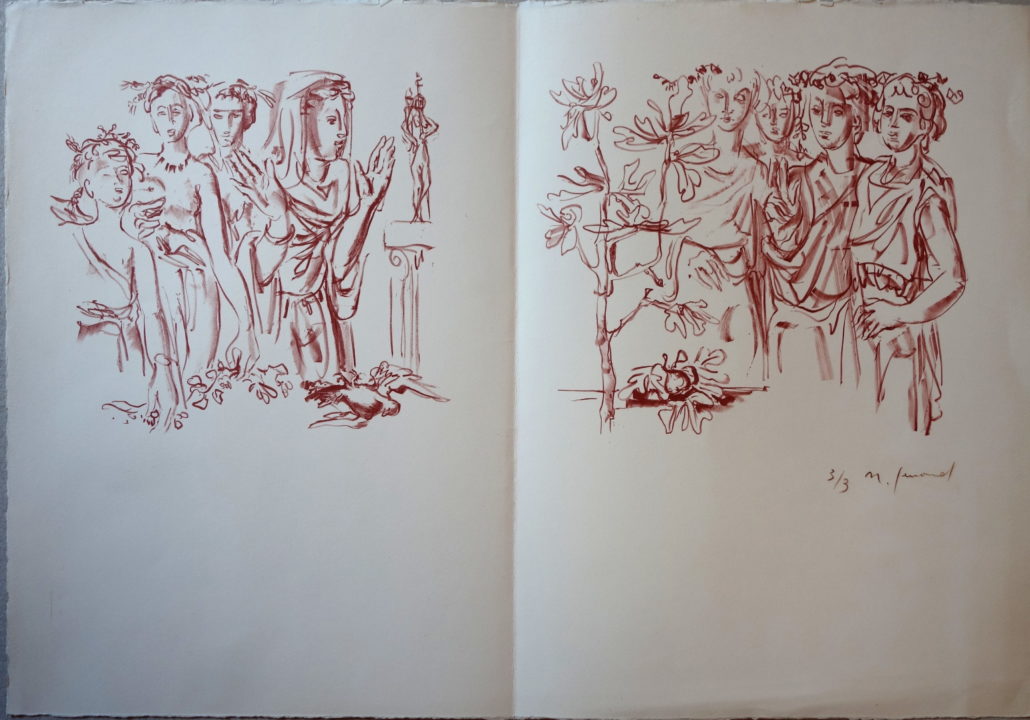 - la scène de gauche semble représenter un rite autour d'un oiseau mort, celle de droite en rapport avec un panier de figues