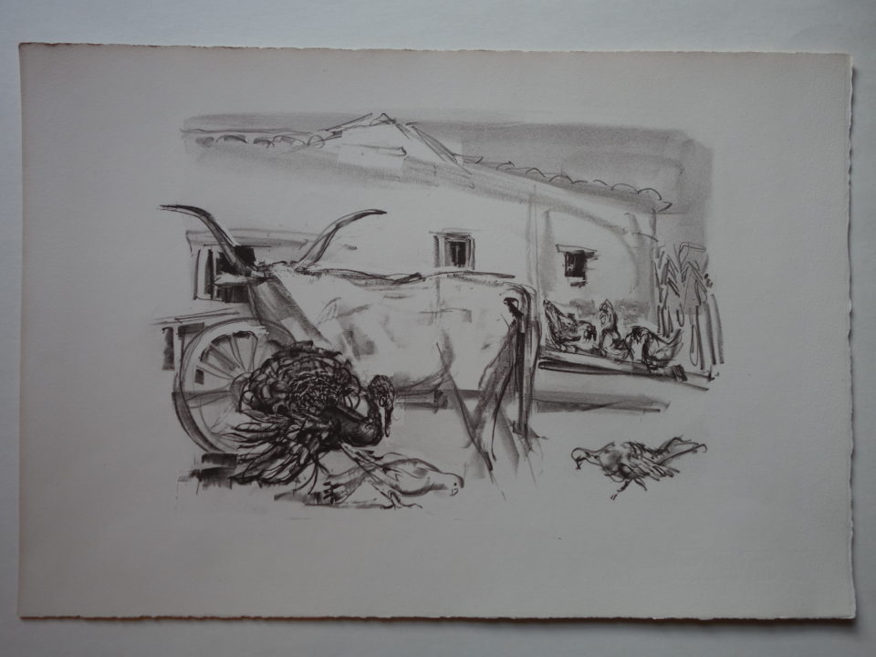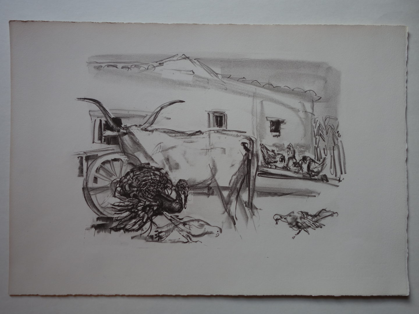 Boeuf, paon et pigeons dans une cour Artiste GENOUD Nanette Numéro d'inventaire FAA-GN-2704 Titre inconnu Dénomination Boeuf, paon et pigeons dans une cour Dimensions sur chassis 28x41 cm Technique / Support Lithographie Catégories Animaux Remarques 9 épreuves rouge foncé non signées 1 épreuve noire non signée, bords latéraux coupés Agrandir l'image Découvrez l'artiste GENOUD Nanette (CH) 9 avril 1907 / 30 novembre 1987 Fonds géré par la FAA Consulter sa fiche