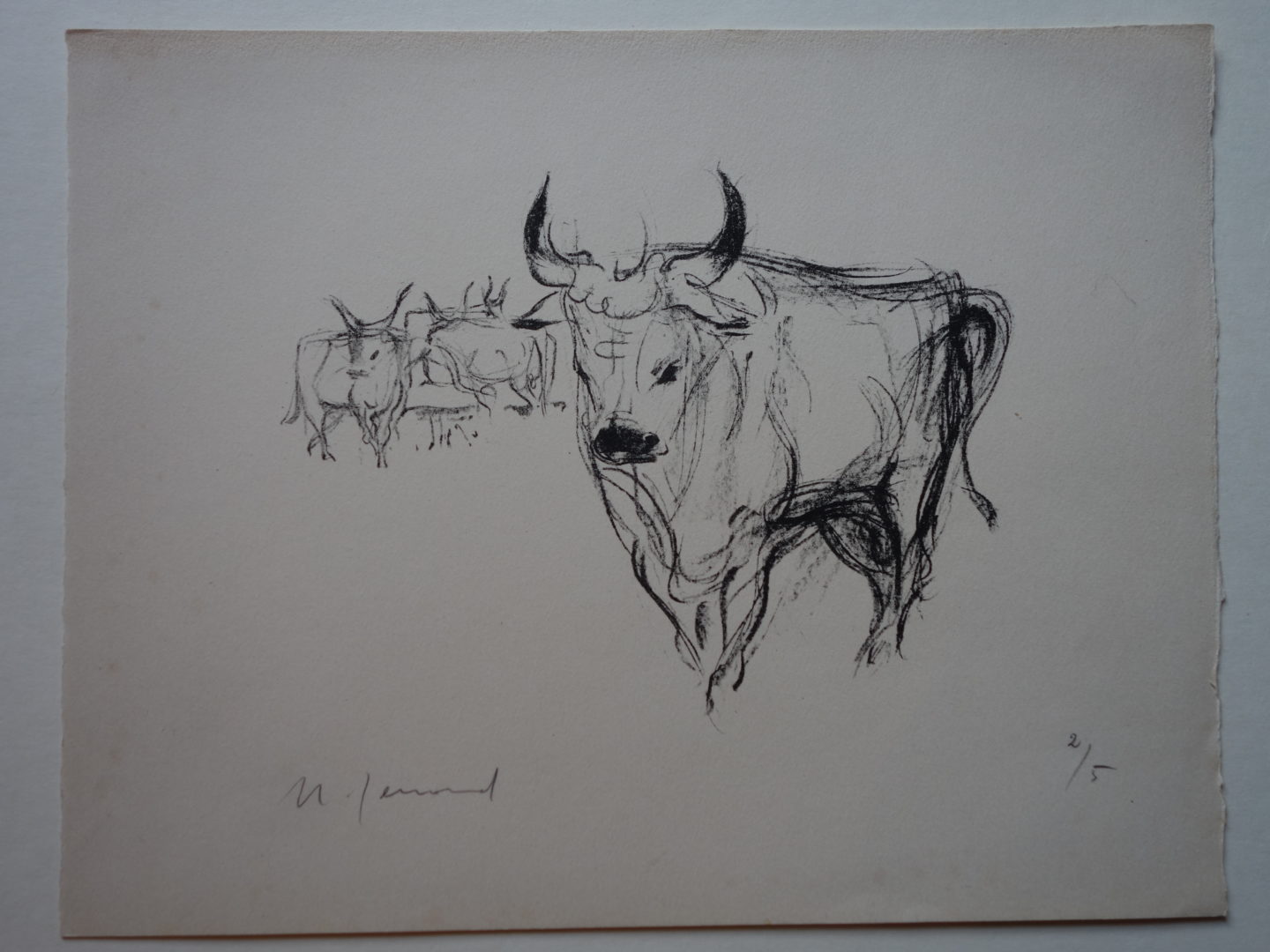 Portrait de boeuf avec troupeau à l'arrière-plan Artiste GENOUD Nanette Numéro d'inventaire FAA-GN-2708 Titre inconnu Dénomination Portrait de boeuf avec troupeau à l'arrière-plan Dimensions sur chassis 22x28.5 cm Technique / Support Lithographie Catégories Animaux Signature / Datation "n. Genoud" Remarques 2 épreuves signées bg et justifiées "2/5-2 et "3/5" Belle pièce Agrandir l'image Découvrez l'artiste GENOUD Nanette (CH) 9 avril 1907 / 30 novembre 1987 Fonds géré par la FAA Consulter sa fiche Images complémentaires GENOUD Nanette – Portrait de boeuf avec troupeau à l'arrière-plan – Lithographie, 22x28.5 cm – Animaux